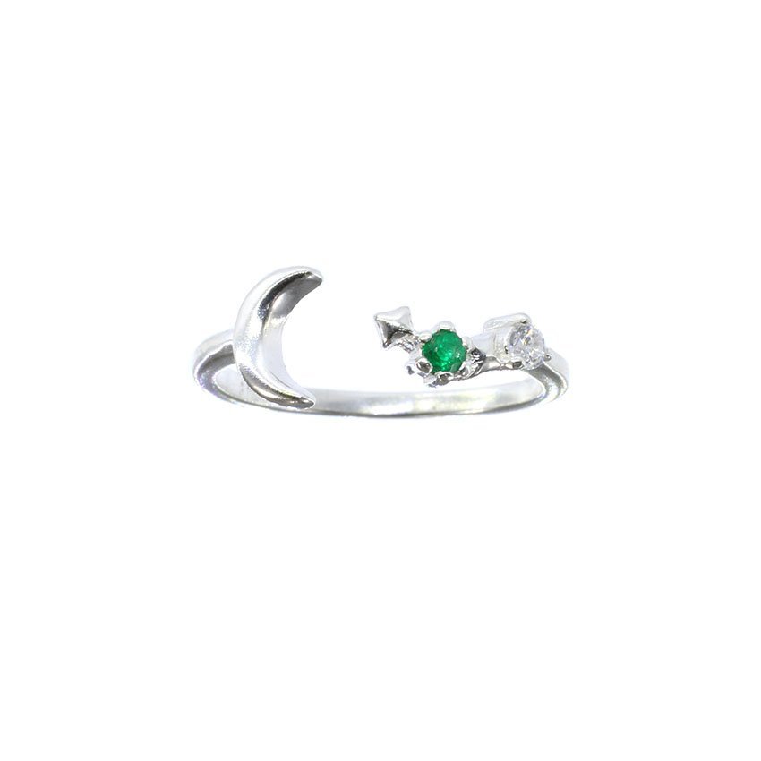 Anillo zafira de plata esmeralda y circones ref. ani-528